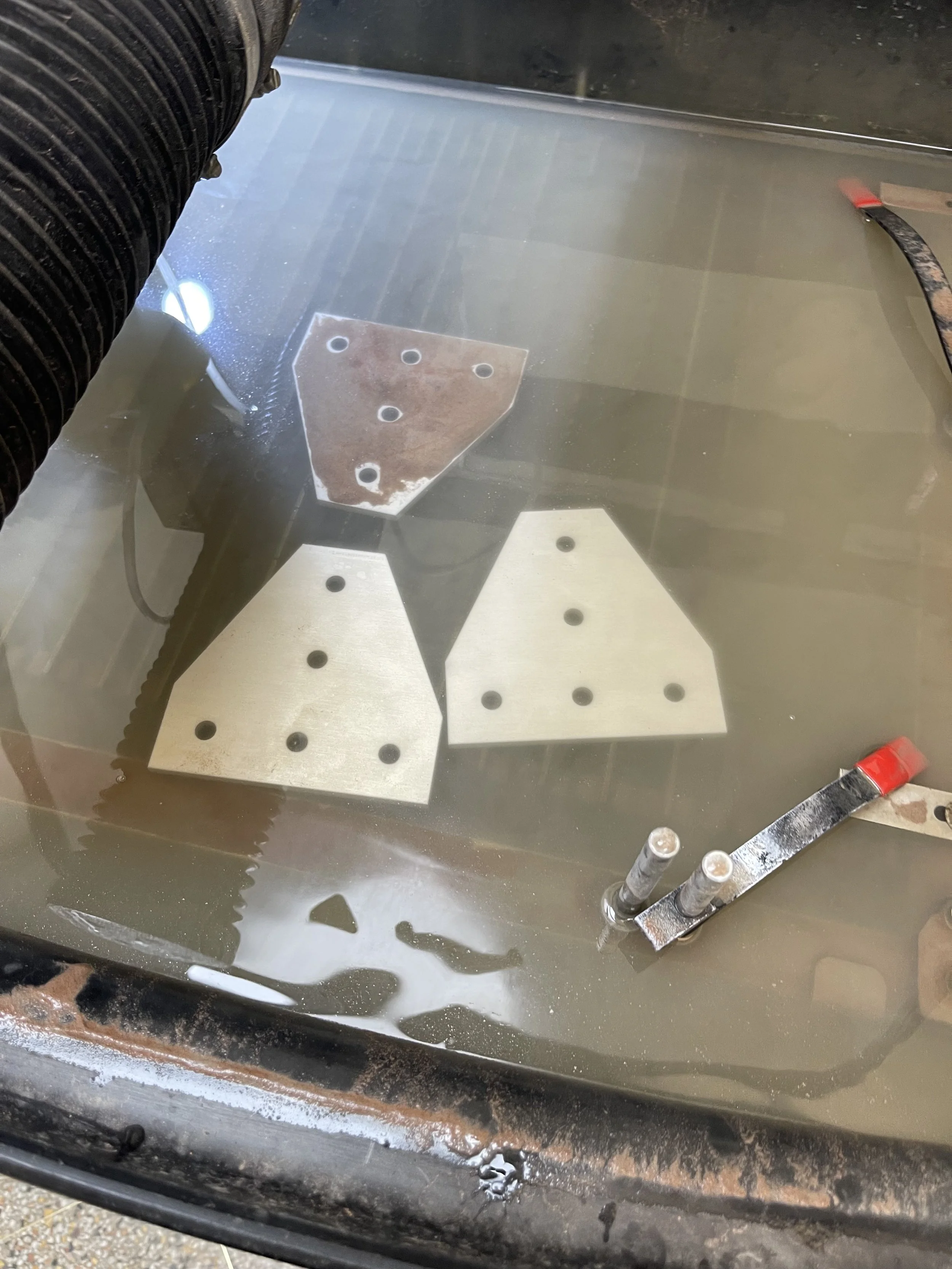 I also did more specific work like printing all the 3D prints, and waterjet cutting the aluminum gussets. I did this side project because we got spare aluminum plates from the storage room, and it was the exact same material and thickness as the gussets that we needed from the 8020 website. That meant I could easily make dxf files, cut the parts, and save our group over 100$ (each one on the website is 12$) from making it myself!